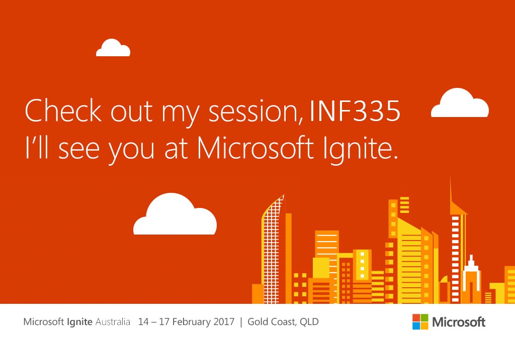 The recording (and PowerPoint) of my session from Ignite is available online, find it here: https://channel9.msdn.com/Events/Ignite/Australia-2017/INF335